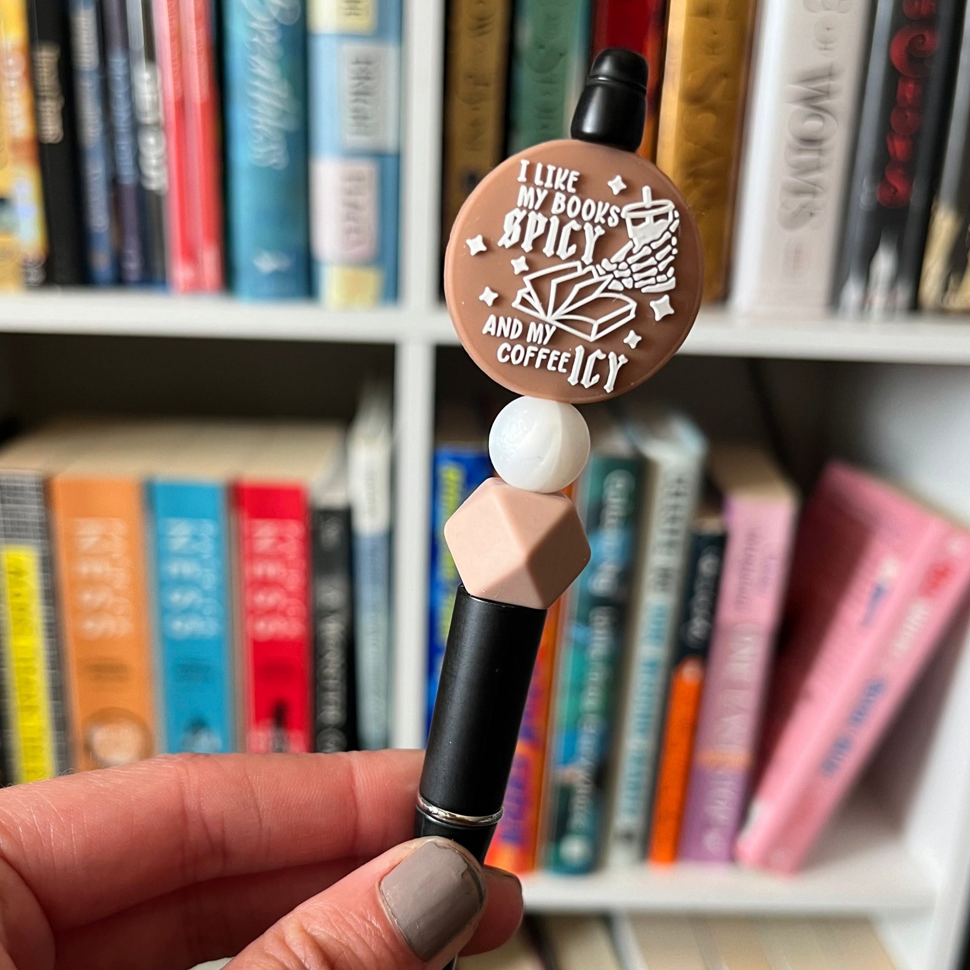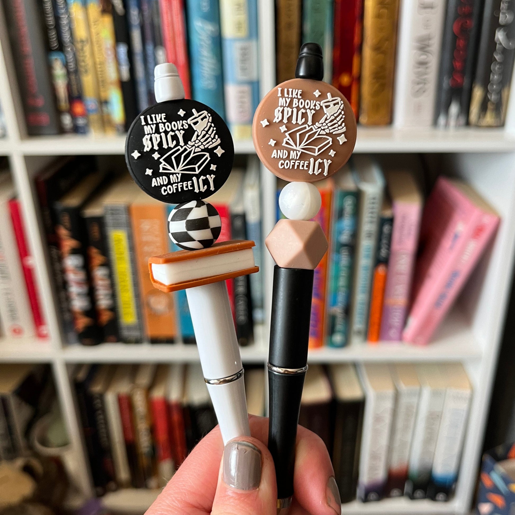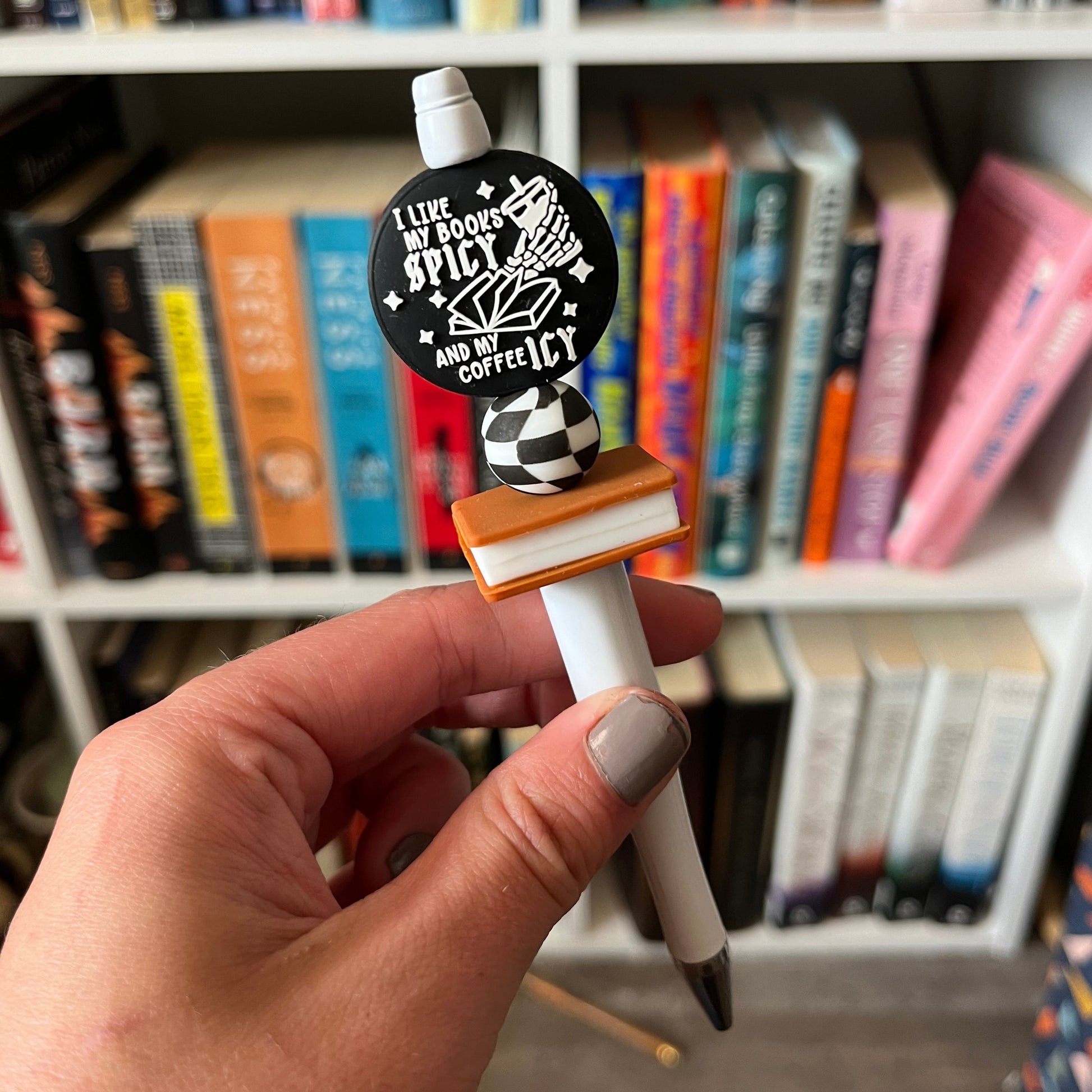 Calling all spicy book lovers, we've got just the pen for you. Keep it neutral and simple with our brown focal bead on a black pen base OR kick it up a notch with our white pen base featuring a trendy checkered bead, a brown book, and a black focal.
