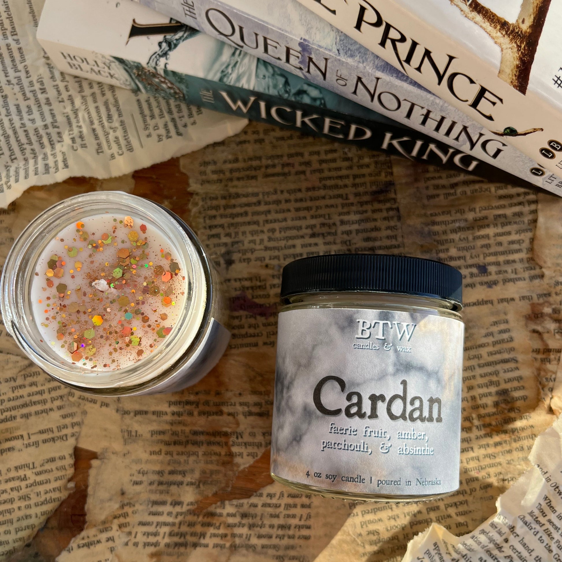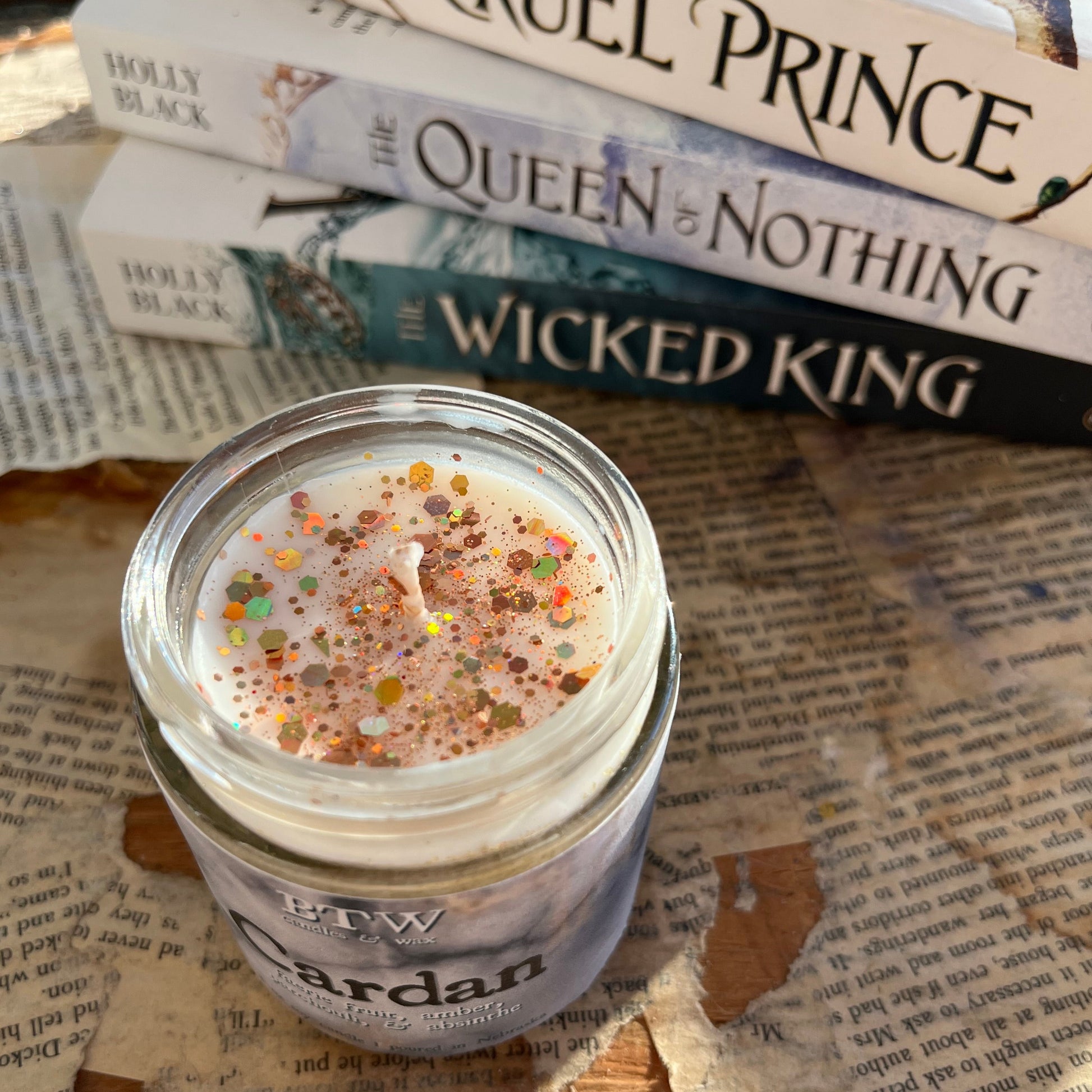 This candle is inspired by Cardan Greenbriar. Our most beloved grumpy and at times quiet bastardly (literally) attitude. Cardan has an affinity for indulging in the finer things like wine, self amusing displays of his power, and looking impressively good sitting on the throne.