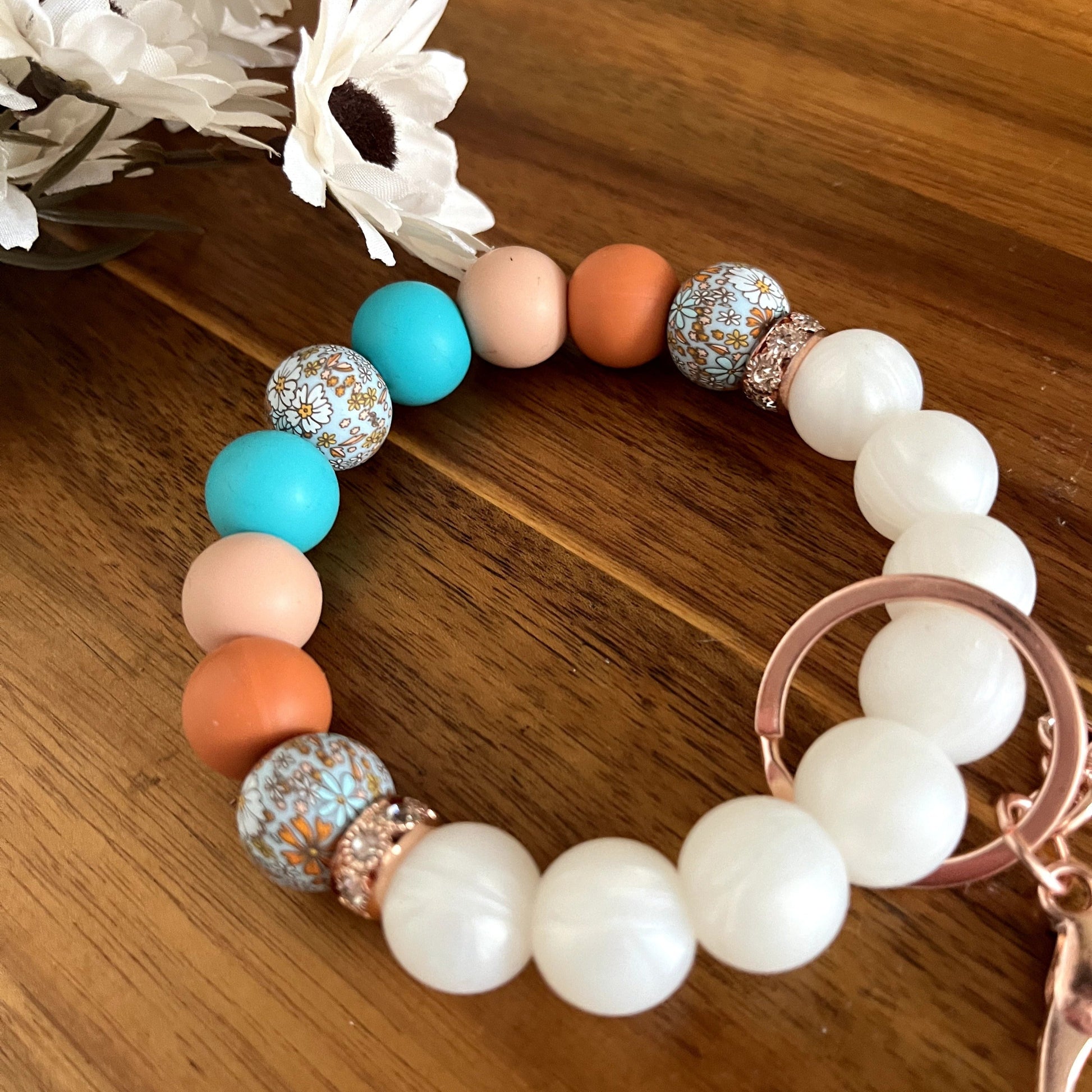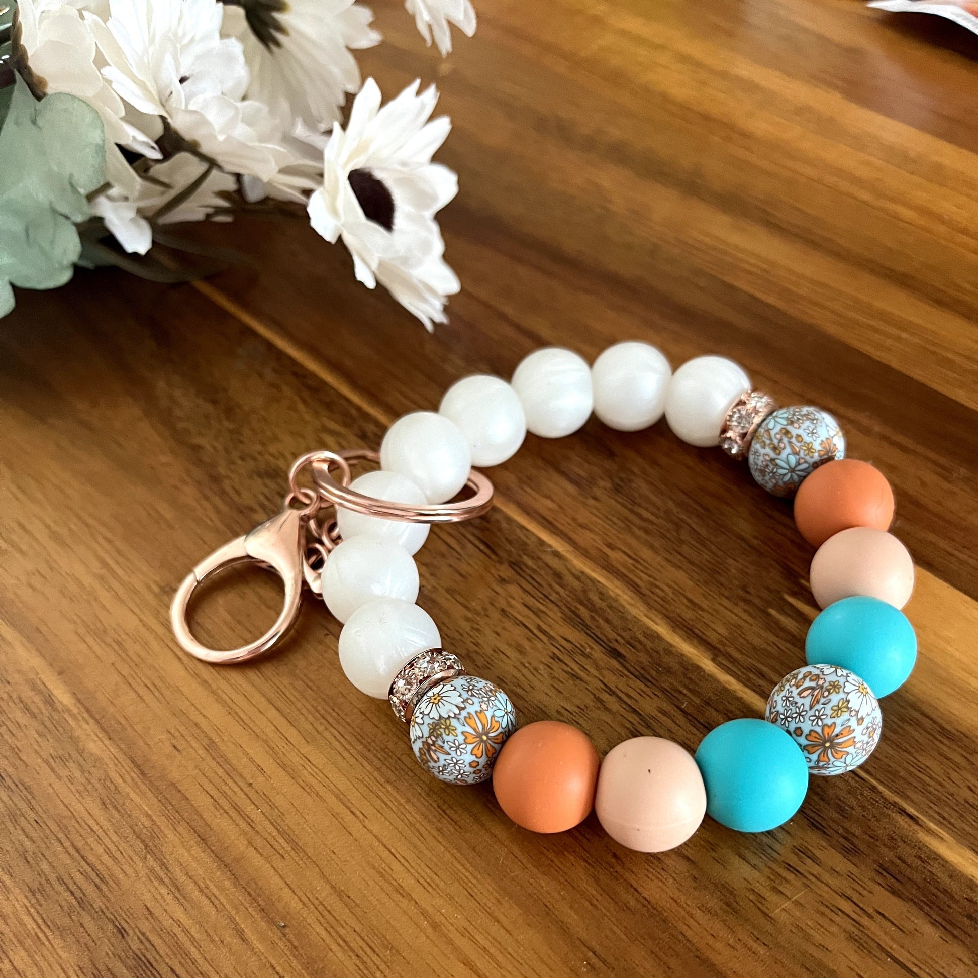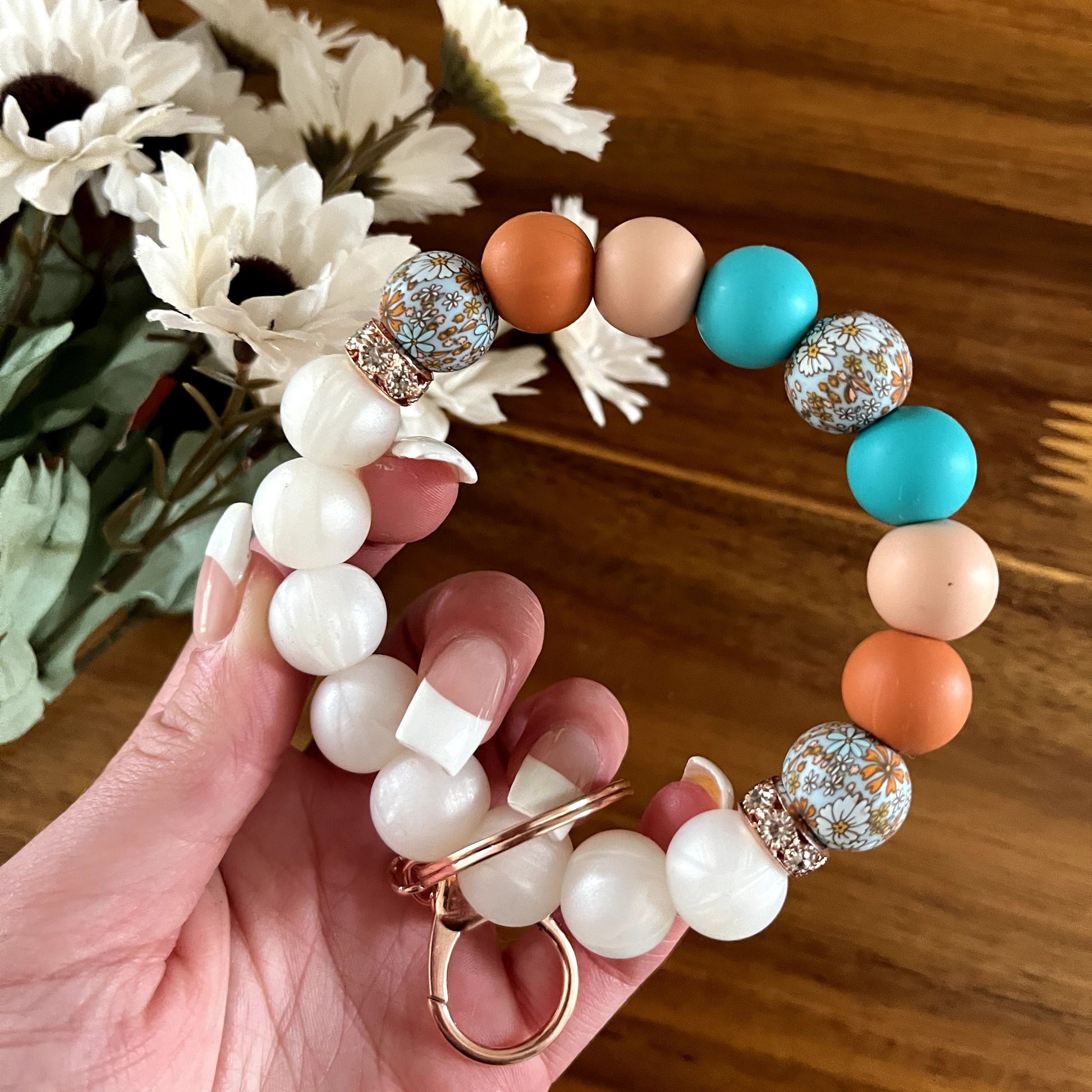 Our beaded wristlets are high quality, made with BPA free silicone beads and durable nylon, so no matter where your keys go your wristlet will last. Our Wristlets are one size fits most designed to roll over your hand and fit loosely on your wrist, without being able to fall off.