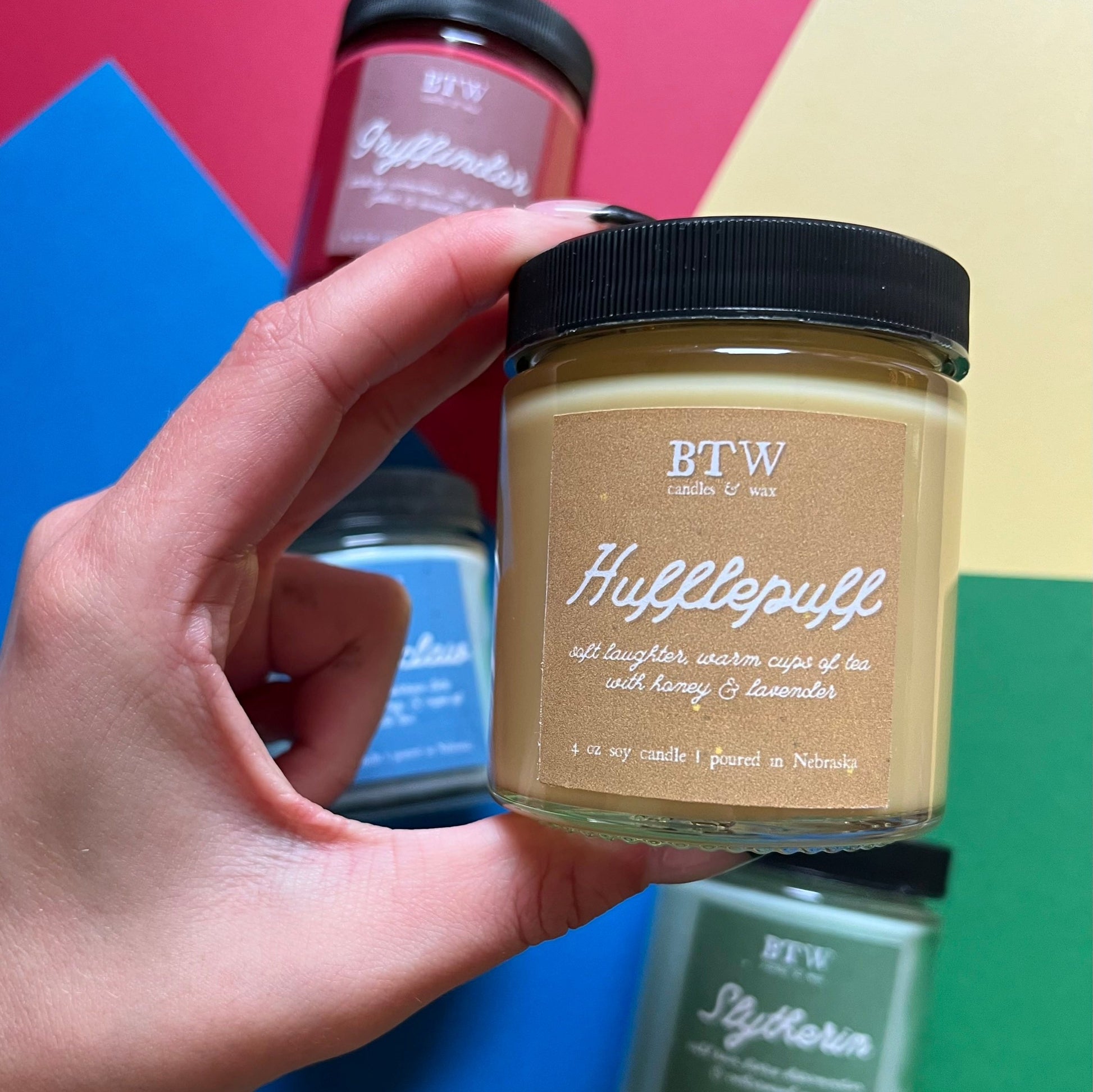Hufflepuff is a truly comforting candle inspired by the compassion of the typical witch or wizard in this house. With a bright yellow base, gold glitter, and notes of relaxing lavender, sweet honey, & lemon tea this candle is sure to make you feel right at home.