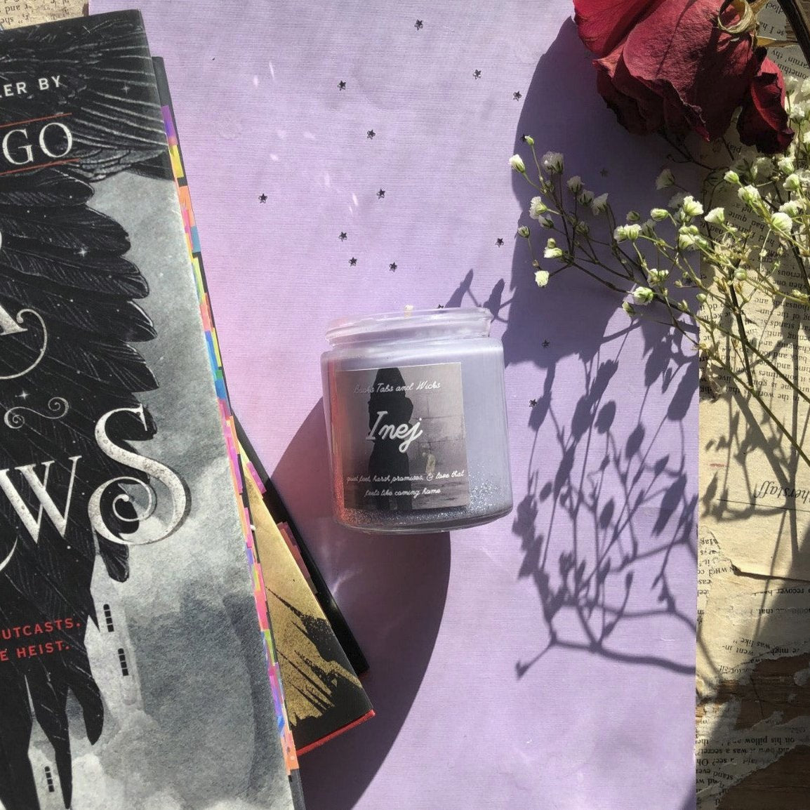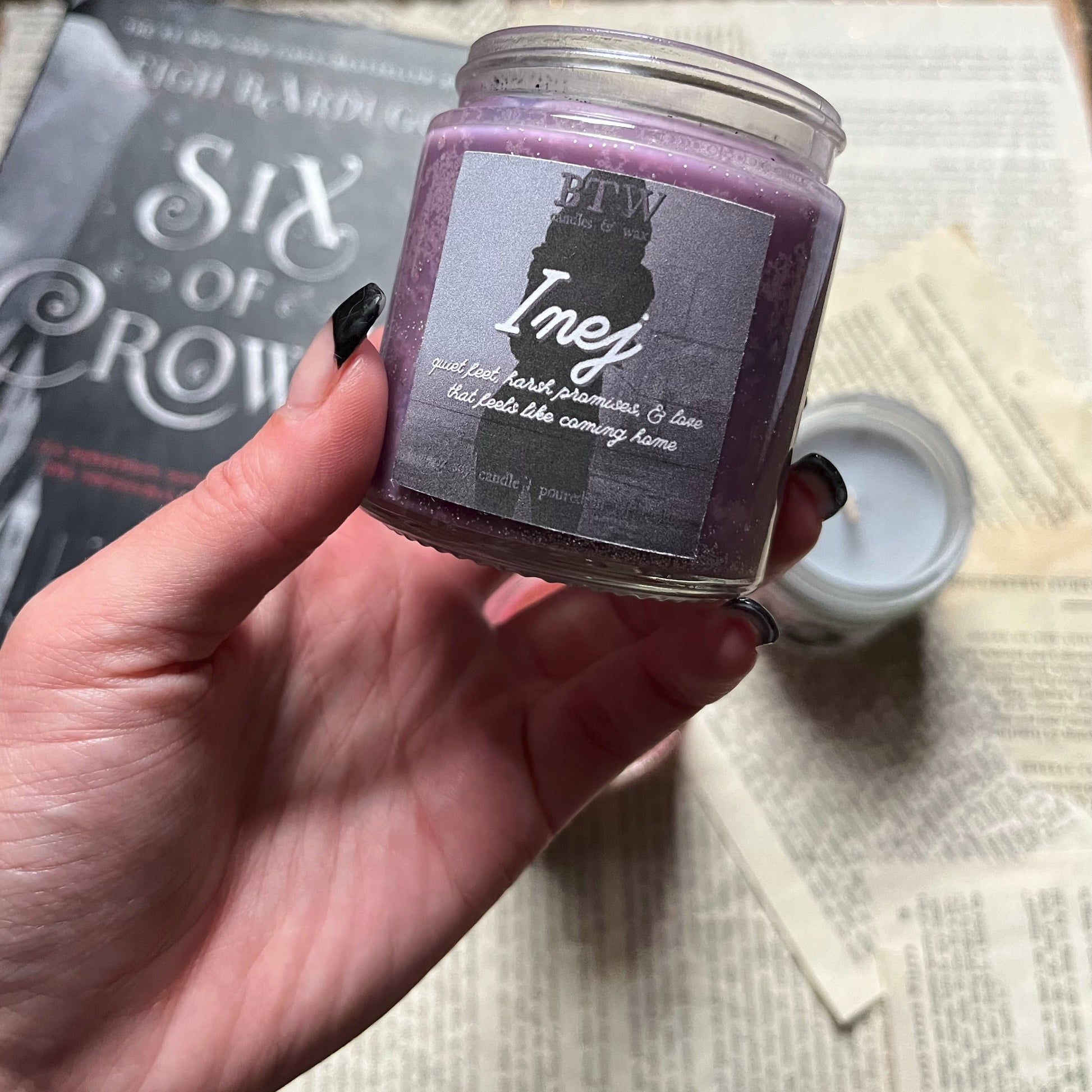 This candle is a pretty purple with a smattering of silver glitter and stars plucked from the cover of night. The blend of sultry amber and sweet, delicate lily make for the perfect personification of our favorite Wraith.