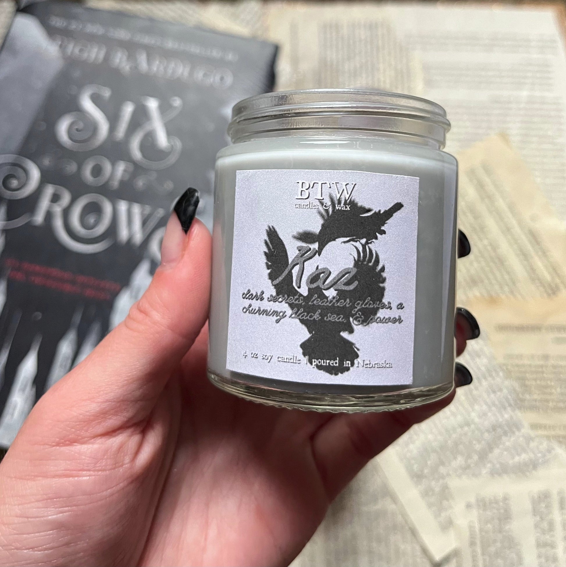 This candle is a cool gray inspired by the grey streets of Ketterdam. The scent is an equally cold, steely blend of dark ocean water, moonlight, bar house smoke, and amber.