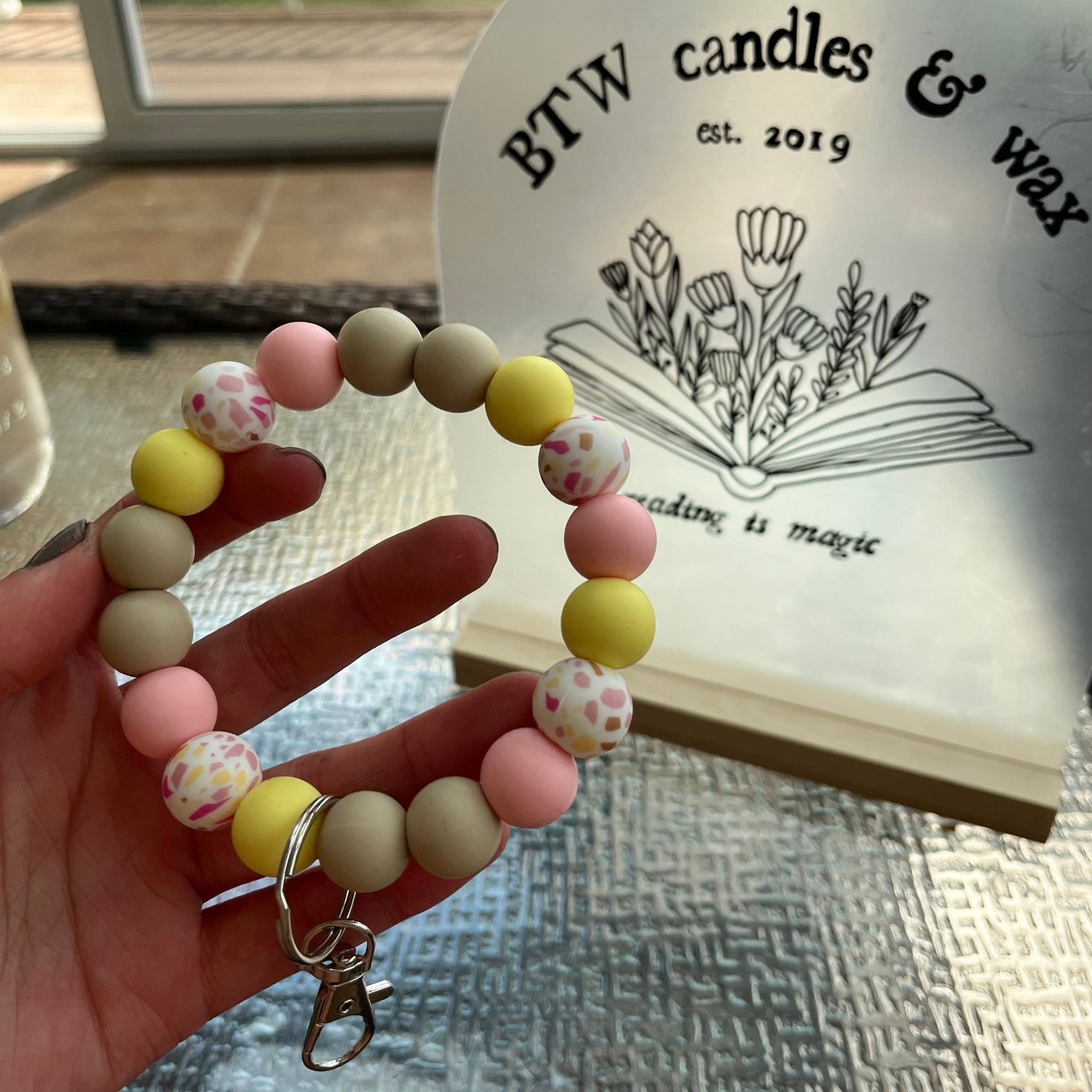 Our beaded wristlets are high quality, made with BPA free silicone beads and durable nylon, so no matter where your keys go your wristlet will last. Our Wristlets are one size fits most designed to roll over your hand and fit loosely on your wrist, without being able to fall off.