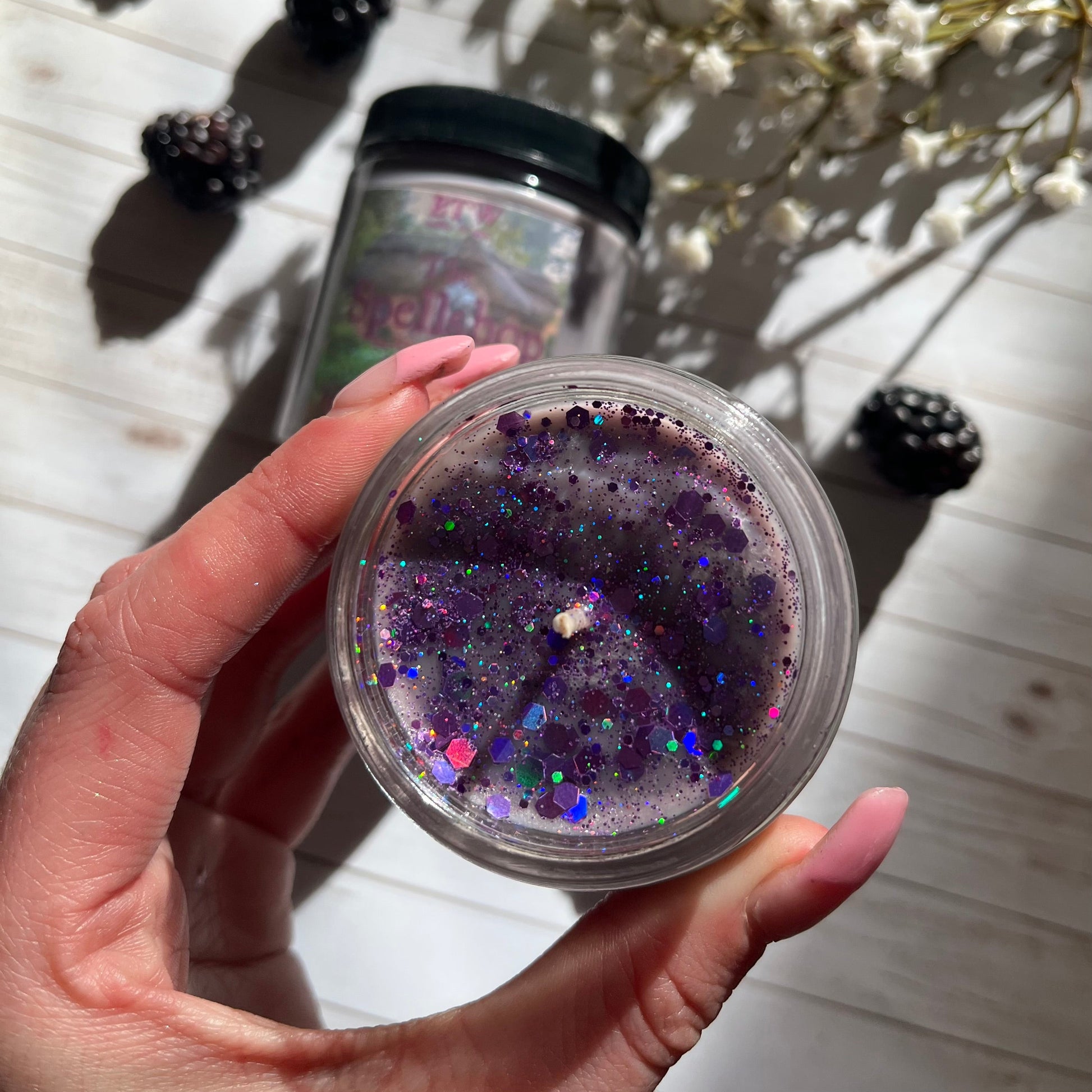 This candle is a light purple with dazzling purple glitter on top made to remind you of Kiela's seaside cottage. Blackberries and plums blend with natural notes of trees, raw magic, and dirt with fresh ozone notes of flowers and an ocean breeze.